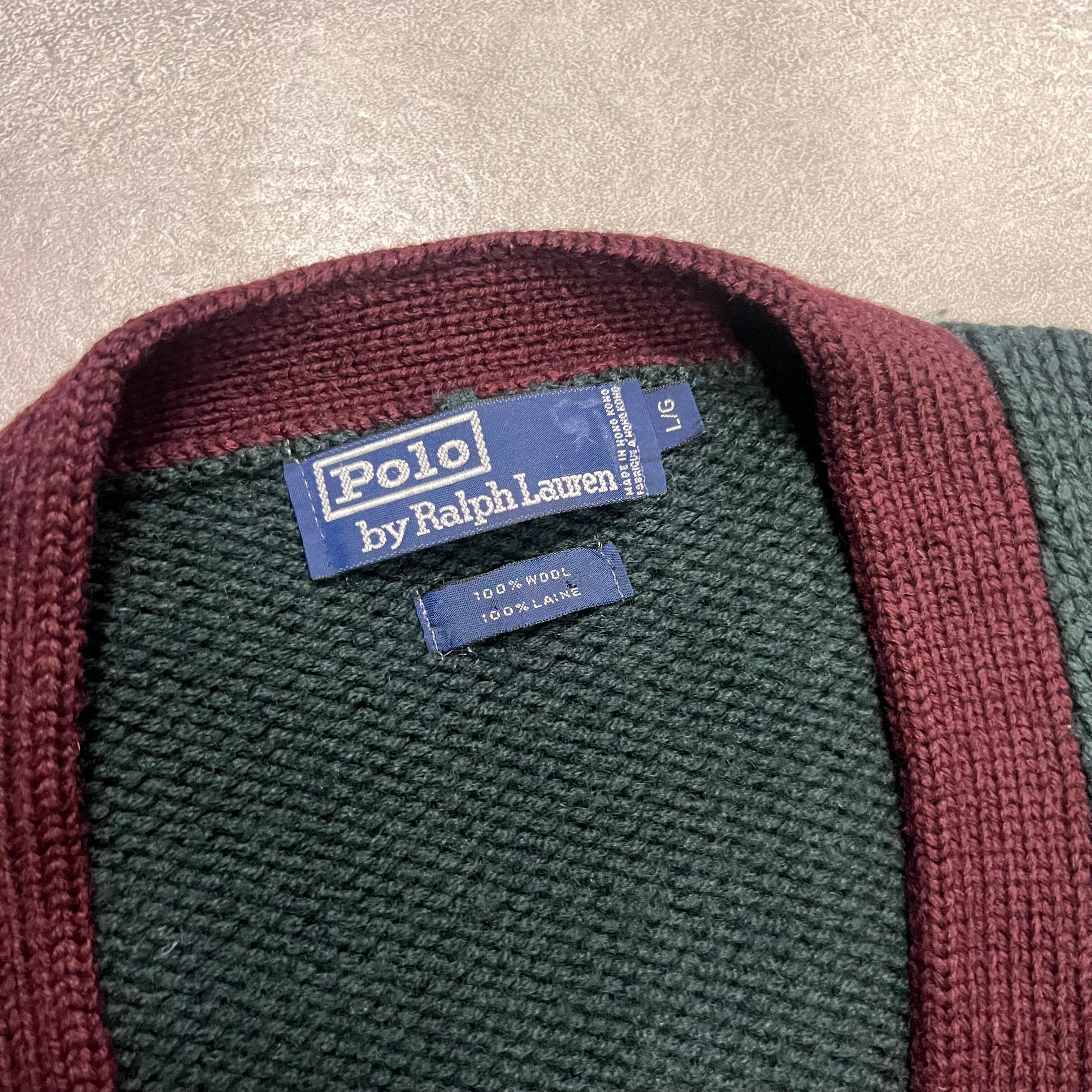 90s Ralph Laurenラルフローレンウールレタードカーディガン緑古着アイビープレッピー