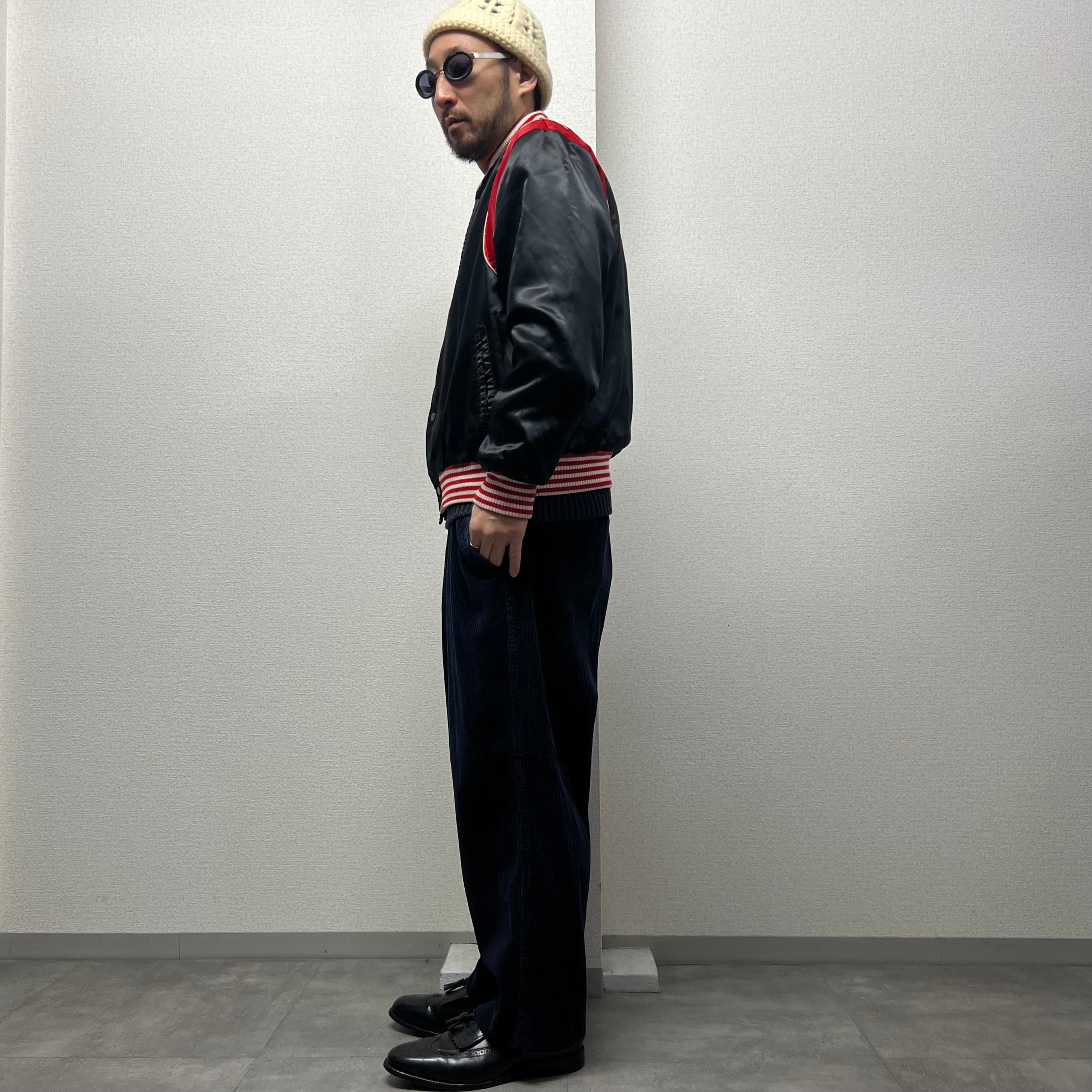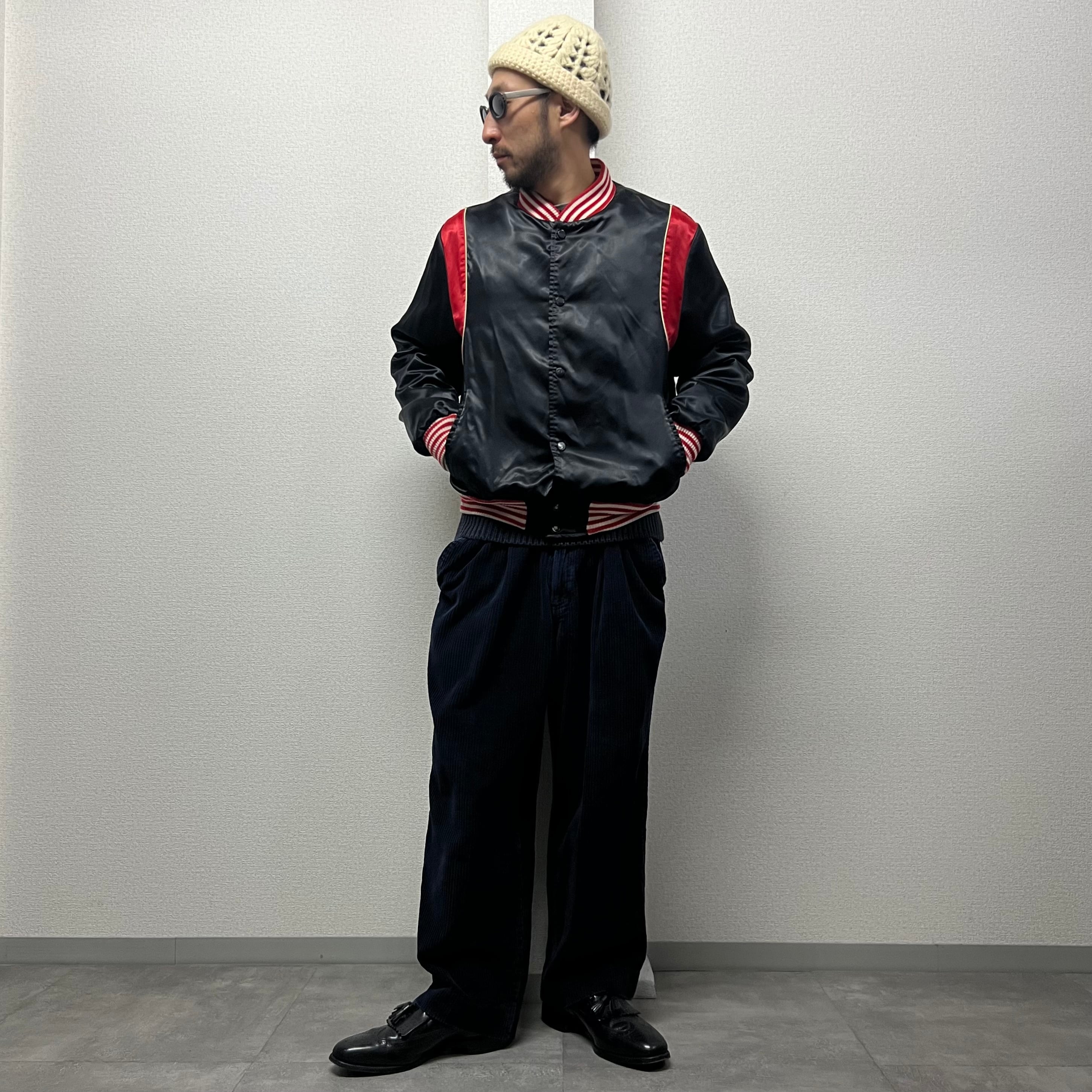 80〜90'sブラックサテンジャケット黒赤ブラックビンテージ古着