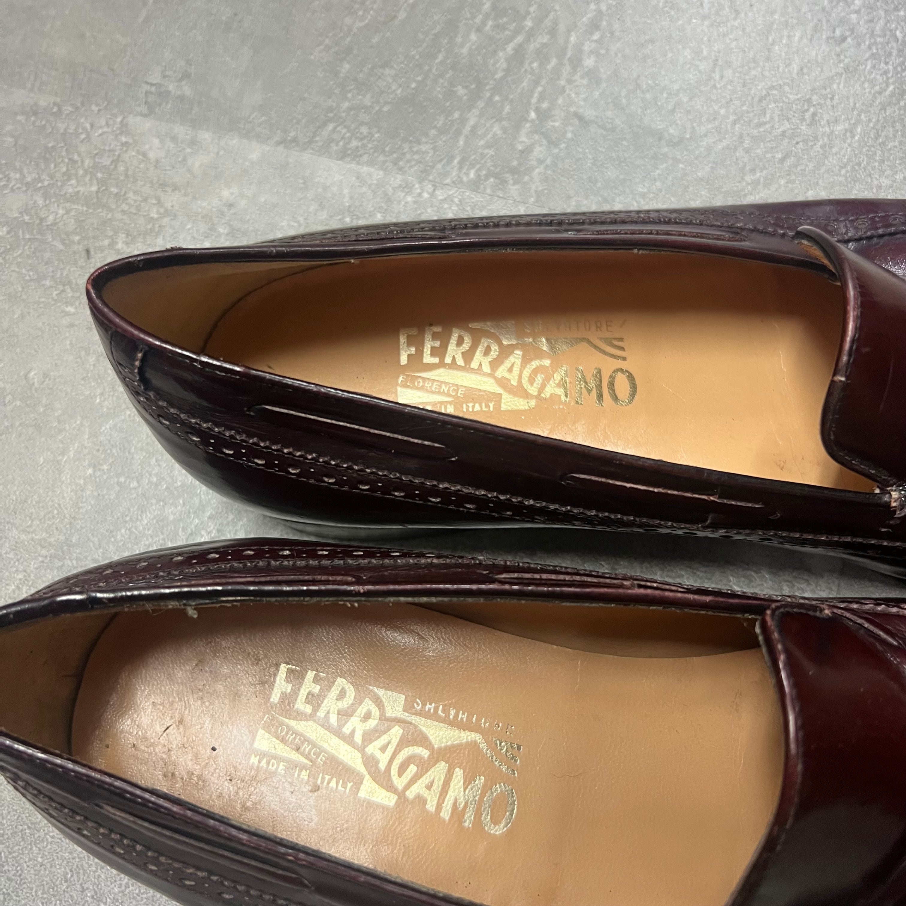 イタリア製サルヴァトーレフェラガモタッセルローファー革靴レザードレスシューズバーガンディー