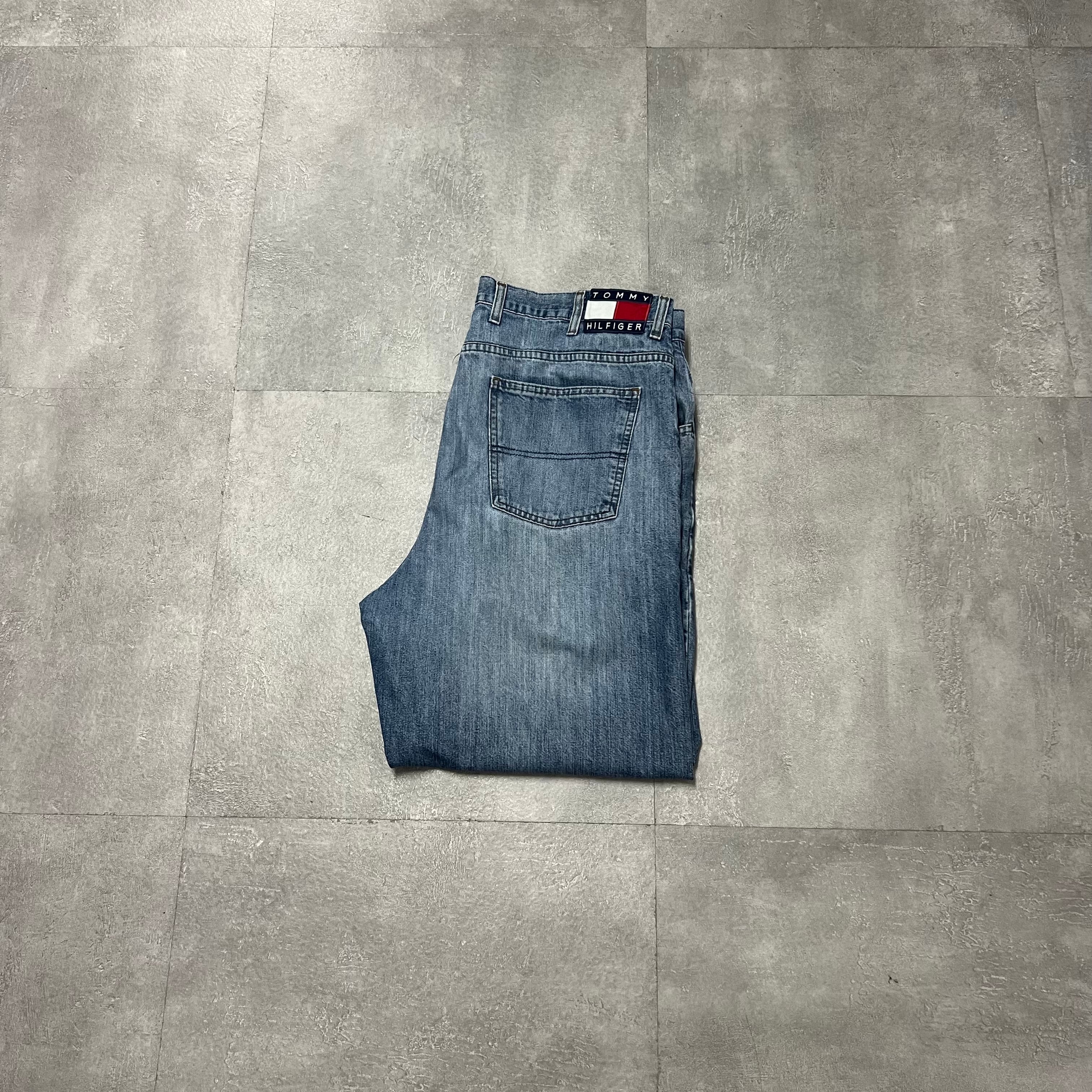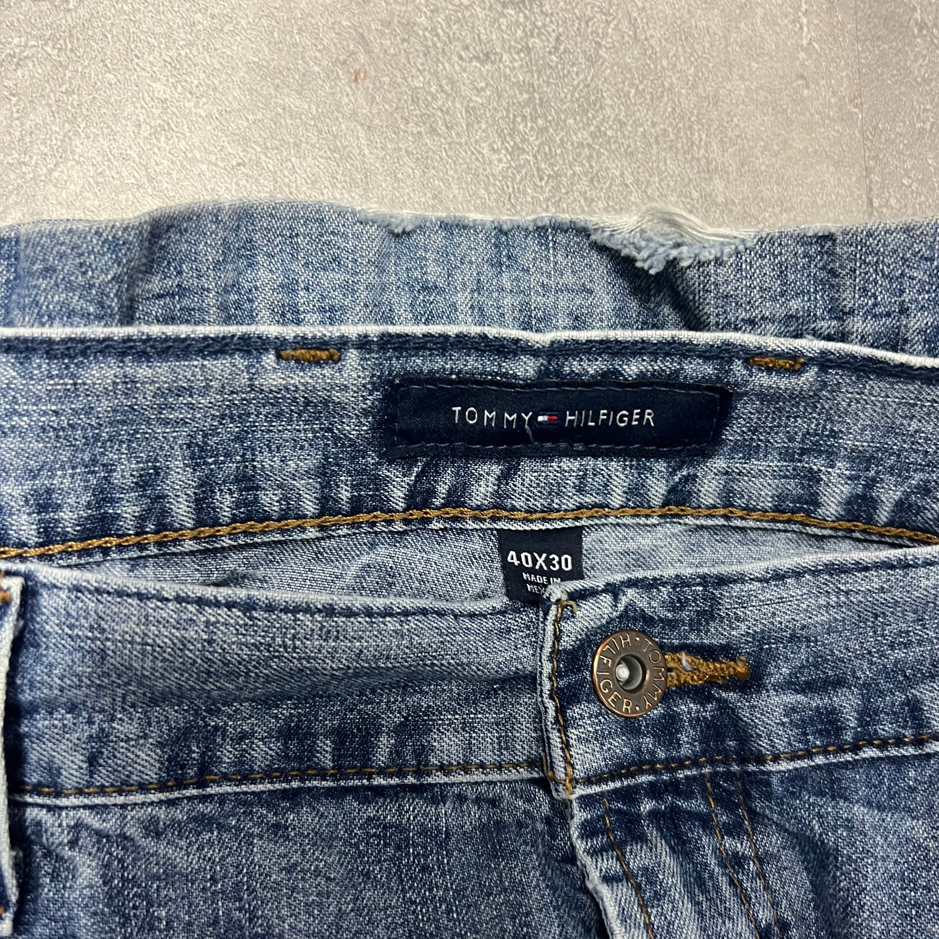 00sトミーヒルフィガーデニムジーンズ極太W40L30ワイドパンツ古着USAアメリカ