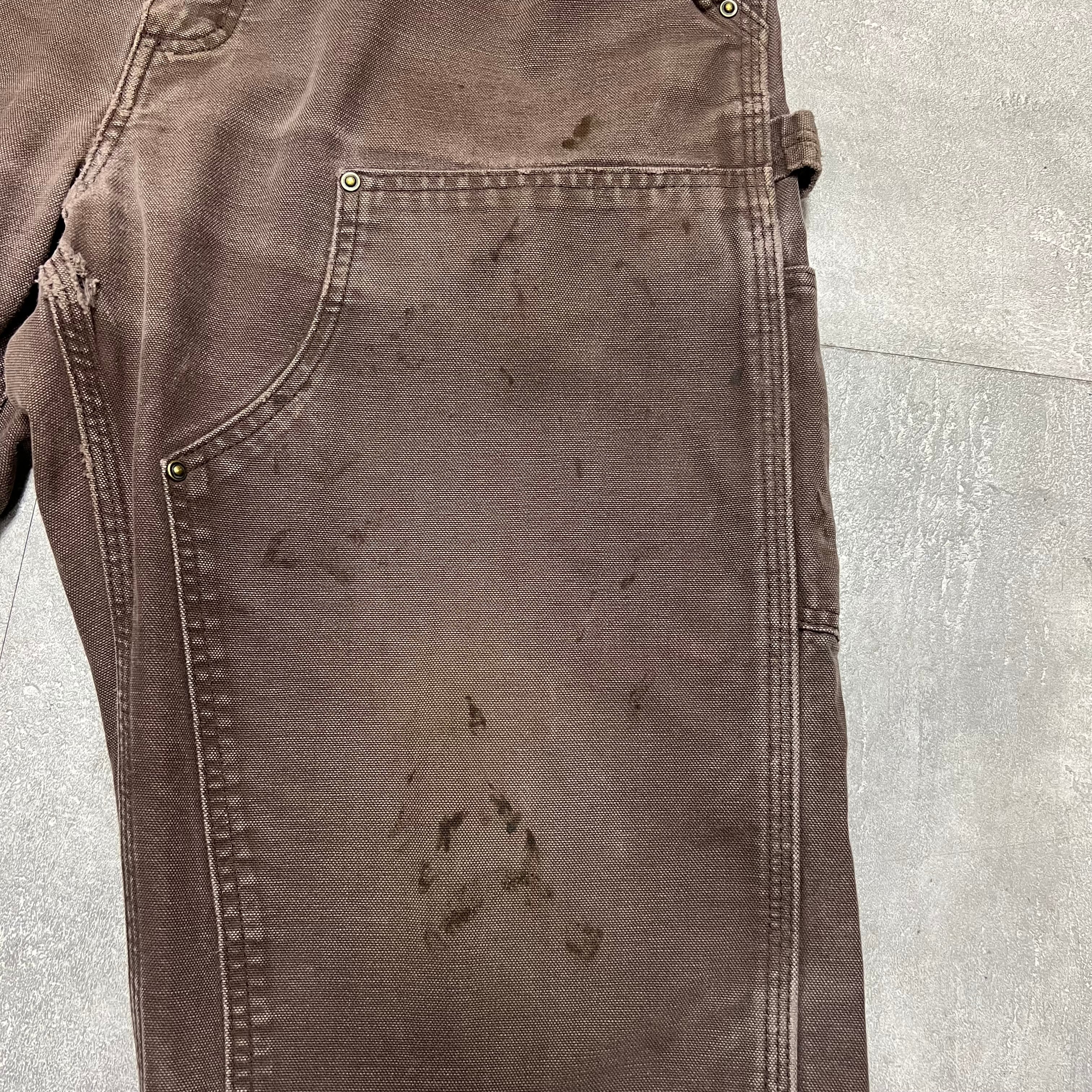 Carharttカーハートダブルニーブラウン茶色W36L32フェード襤褸雰囲気ヴィンテージワーク