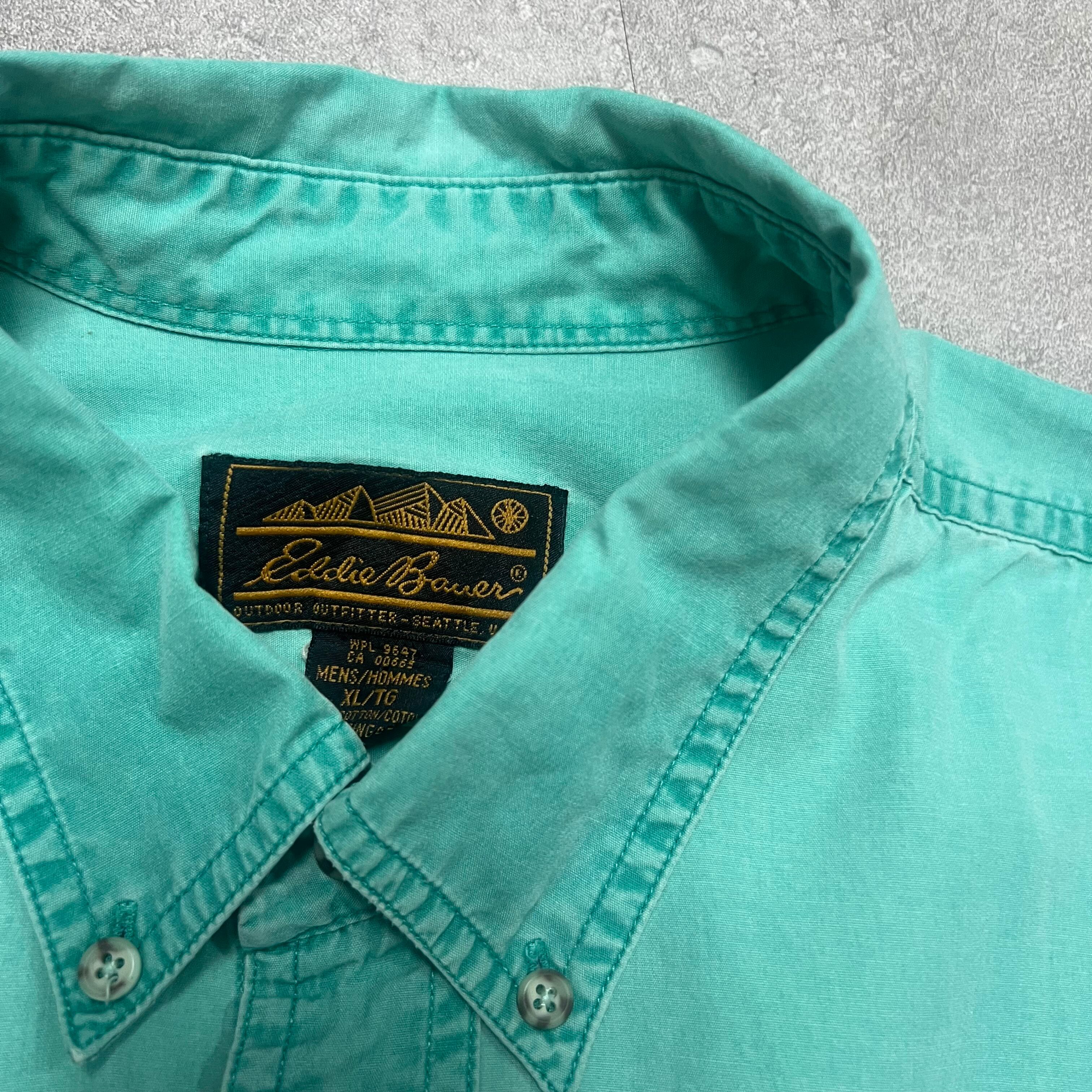 90sエディーバウアーEddie Bauer長袖シャツティファニーブルー古着アウトドアヴィンテージ