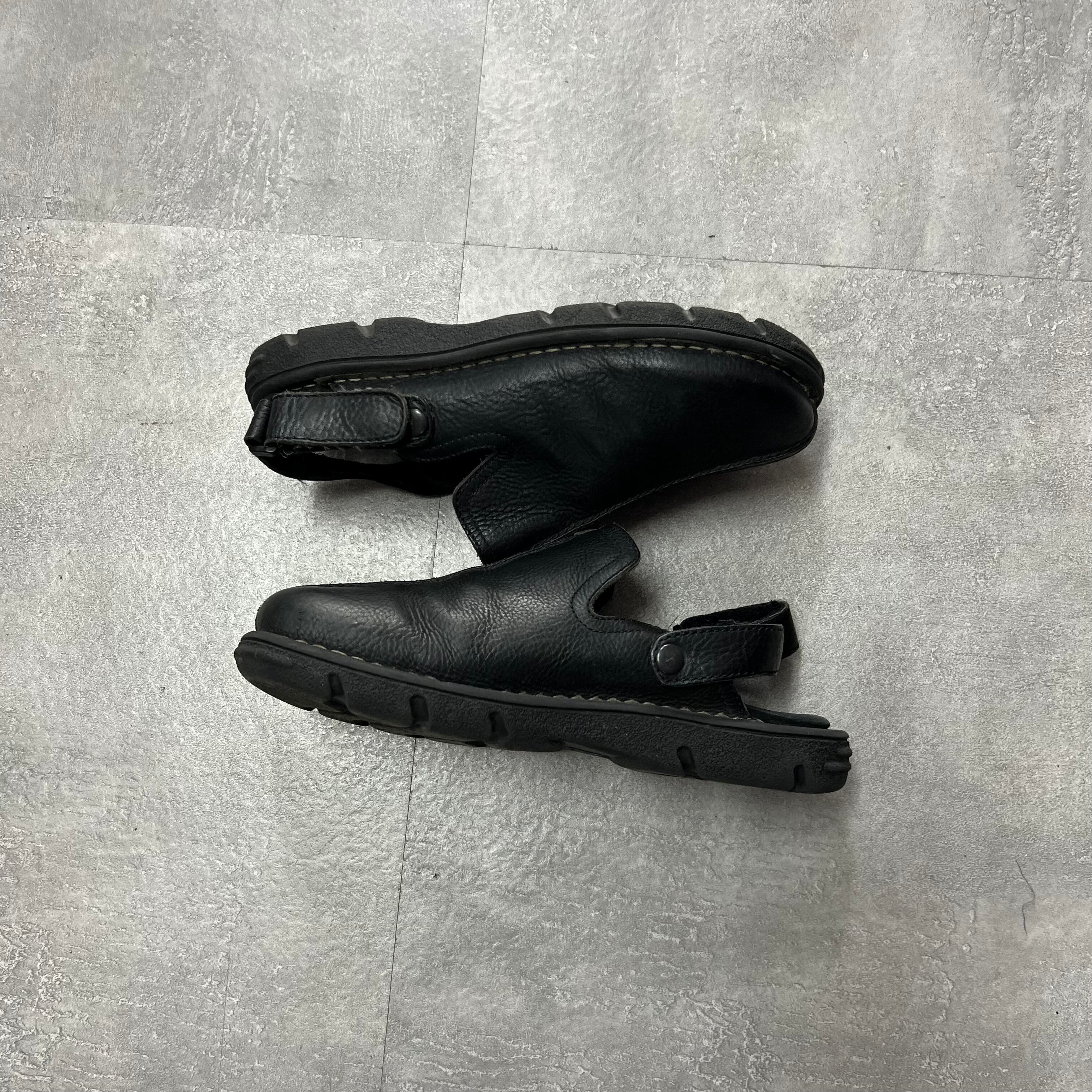 90〜00'sブラックレザーサンダルスリッポン革USAアメリカ古着