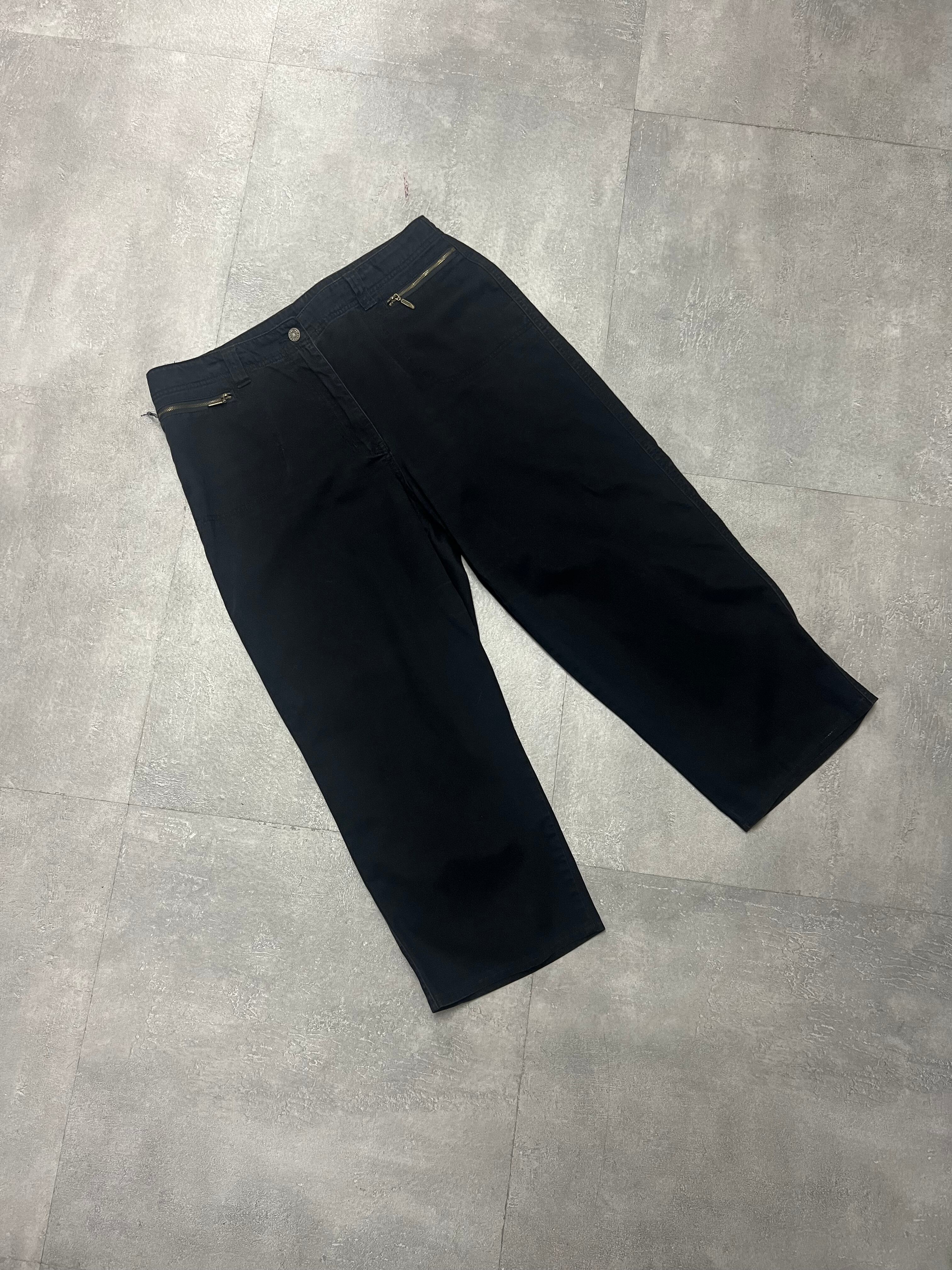 90's半端丈クロップドパンツ黒ブラックW3233デザイン古着アーカイブジョーツ