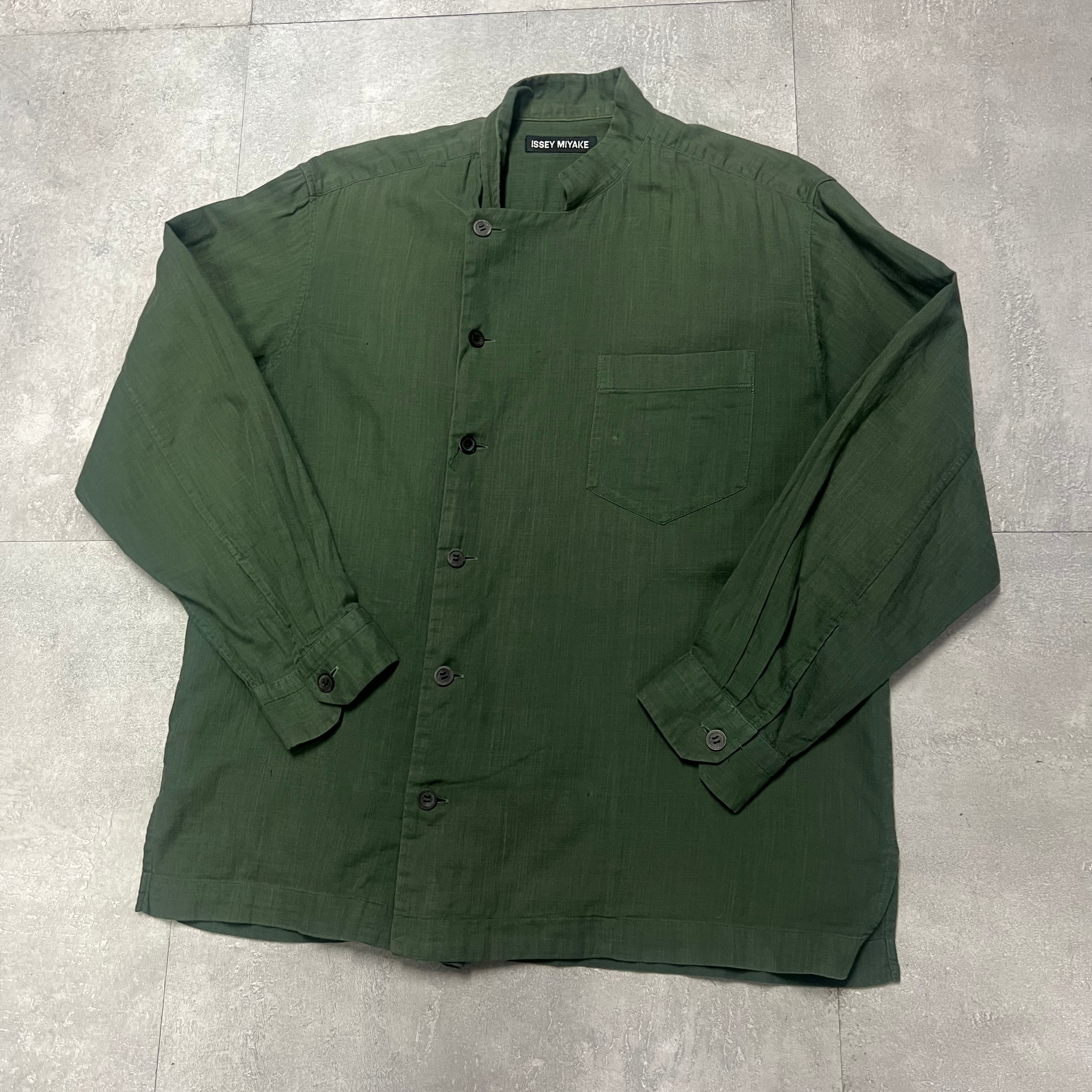 ISSEI MIYAKEイッセイミヤケ変形長袖シャツデザイナーズアーカイブ古着カーキヴィンテージデザイン
