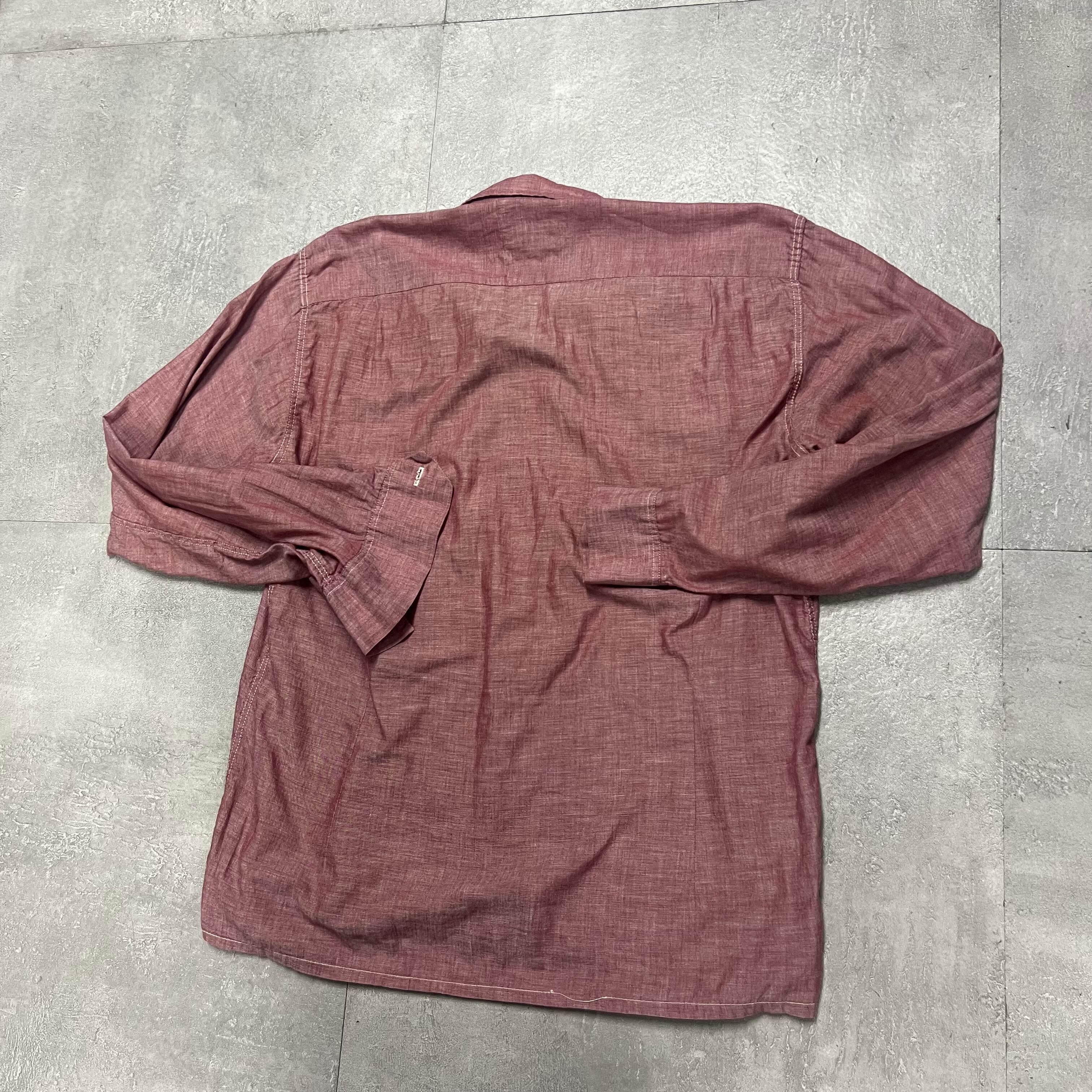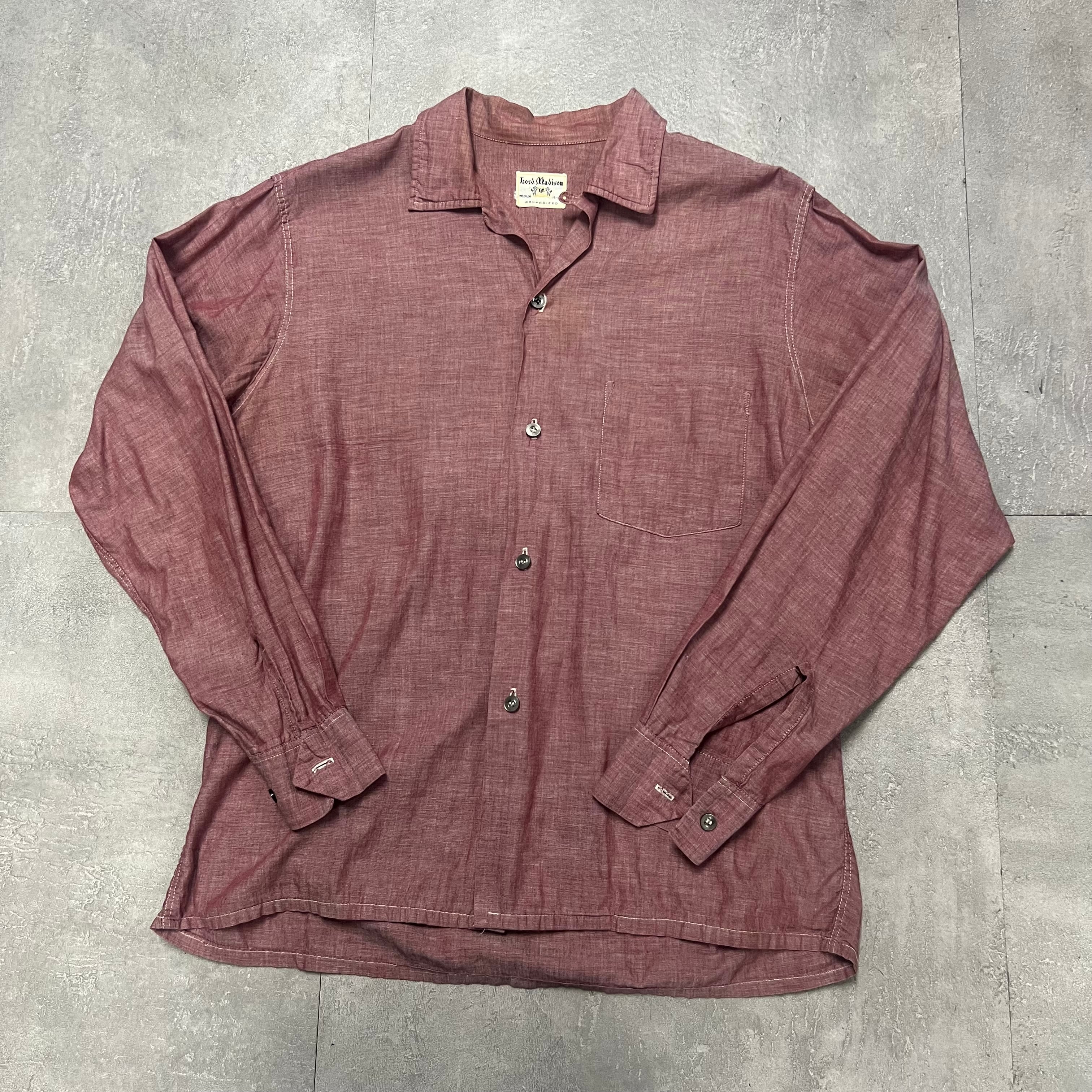 60sシャンブレ開襟オープンカラーループシャツ長袖古着ヴィンテージUSAアメリカ