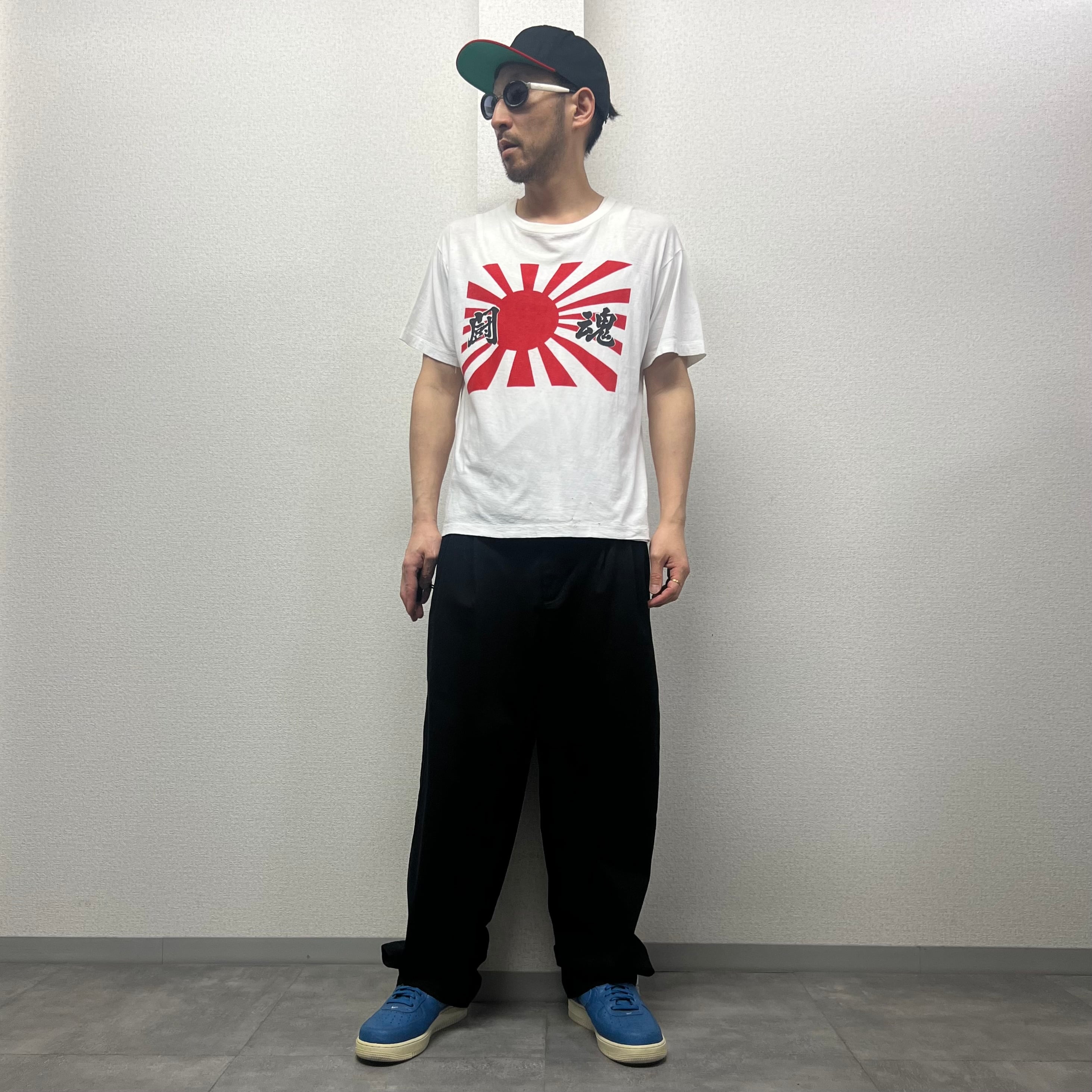 90'sシングルステッチ日章旗闘魂Tシャツ日の丸和物日本古着ヴィンテージ戦争平和