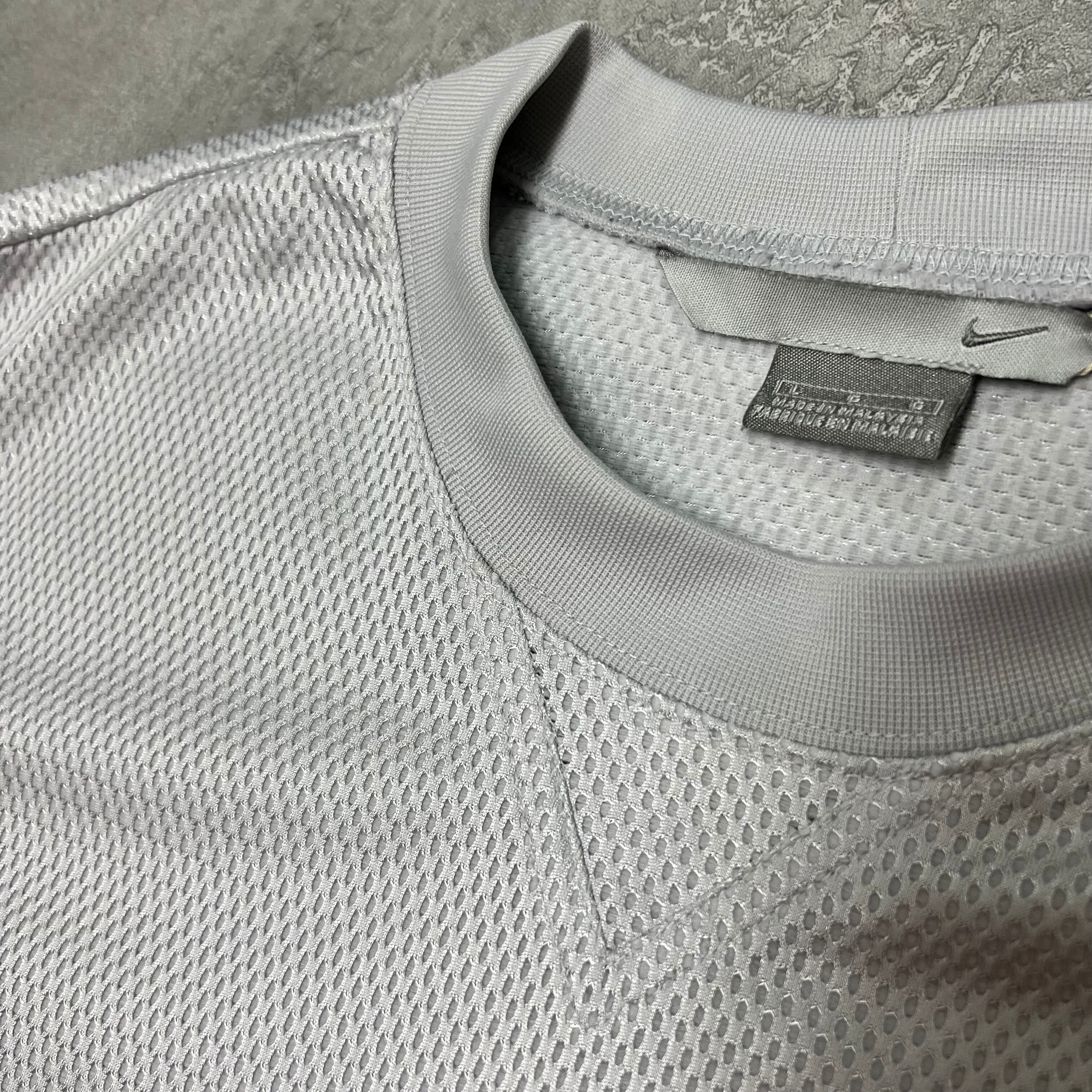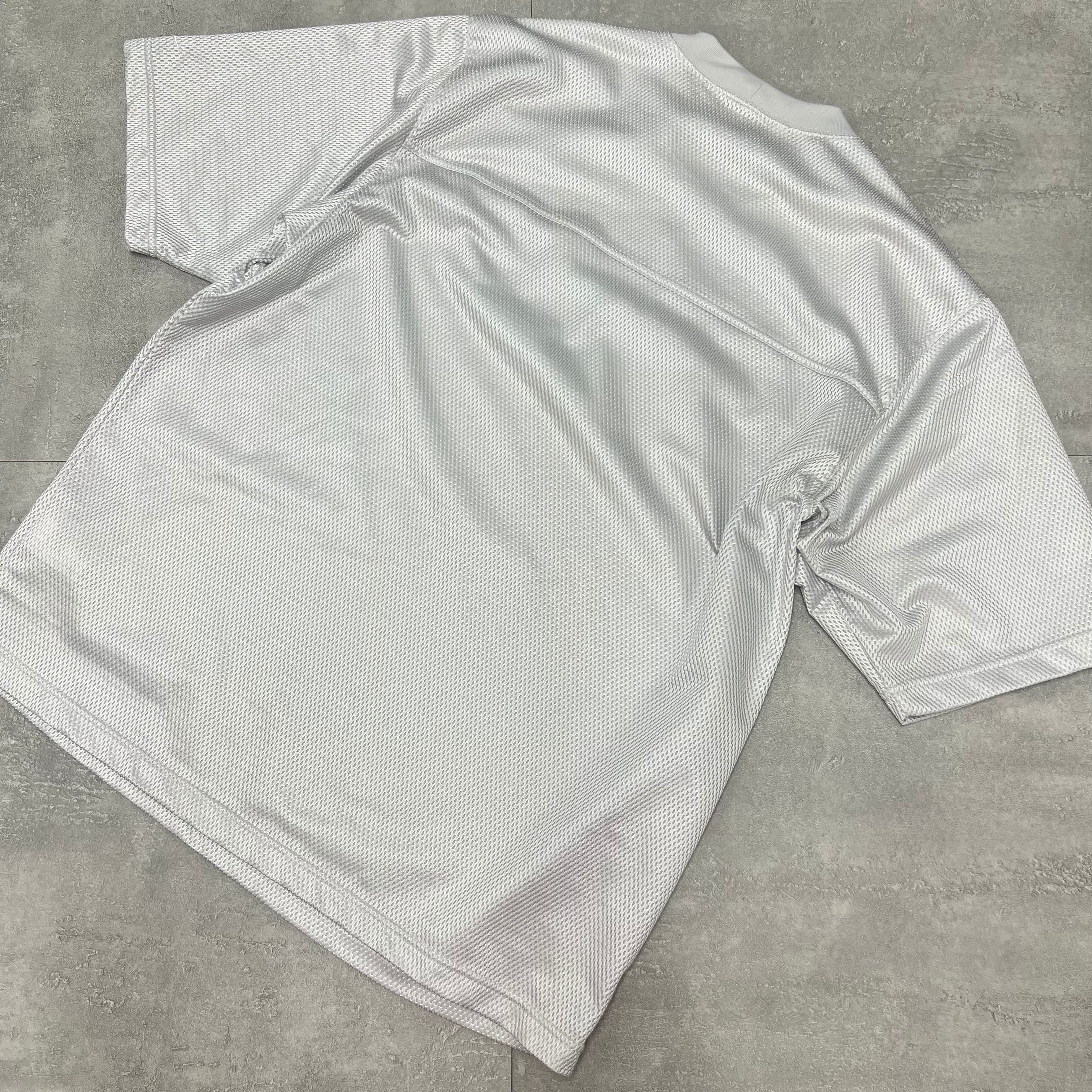 00'sナイキNikeメッシュテック系シルバー半袖ゲームシャツY2Kサッカーバスケユニフォーム