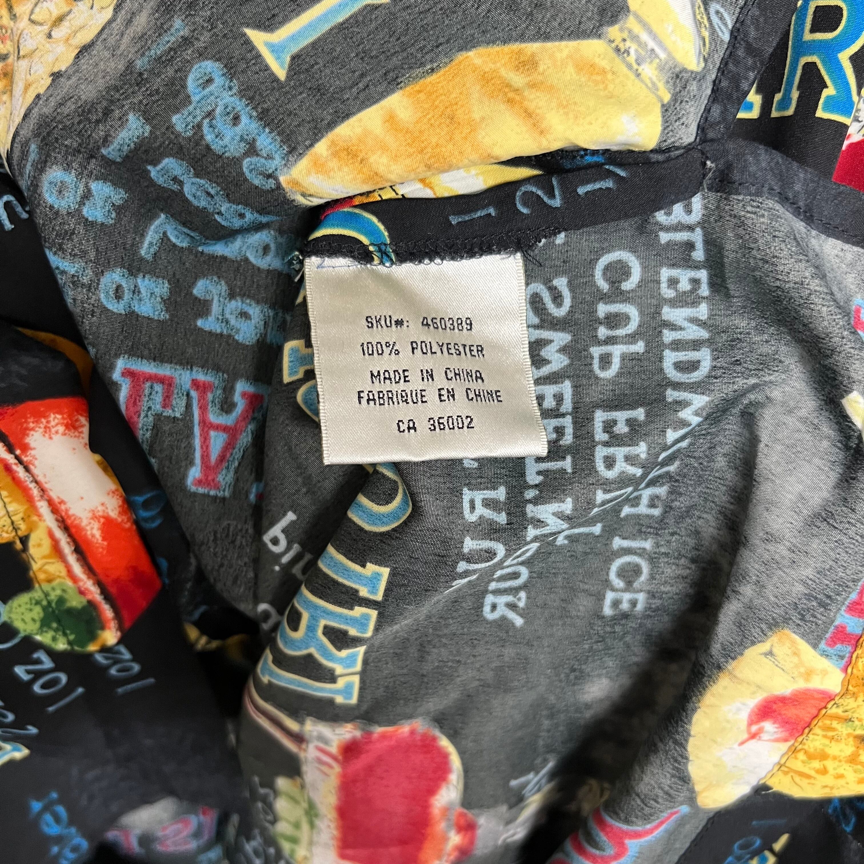 総柄ブラックポリエステルシャツ