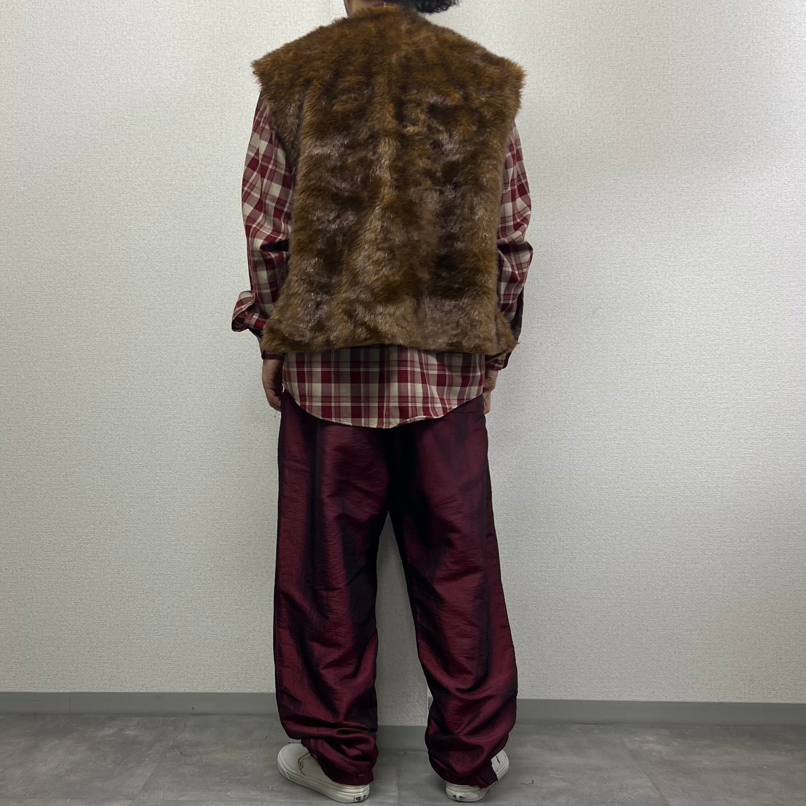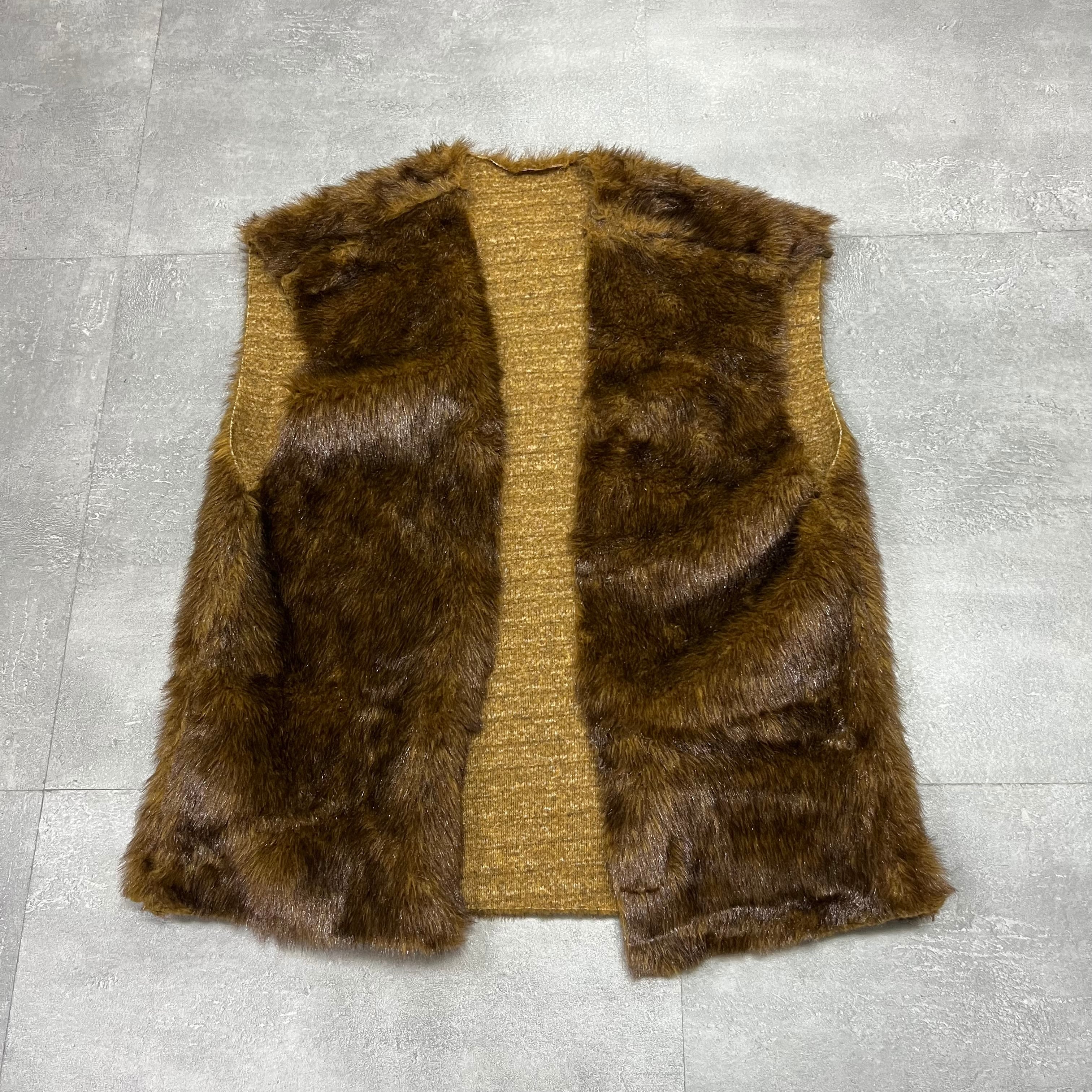 オールドフェイクファーブラウンベスト古着USAアメリカヴィンテージ