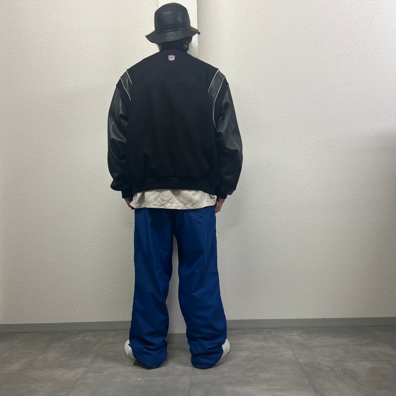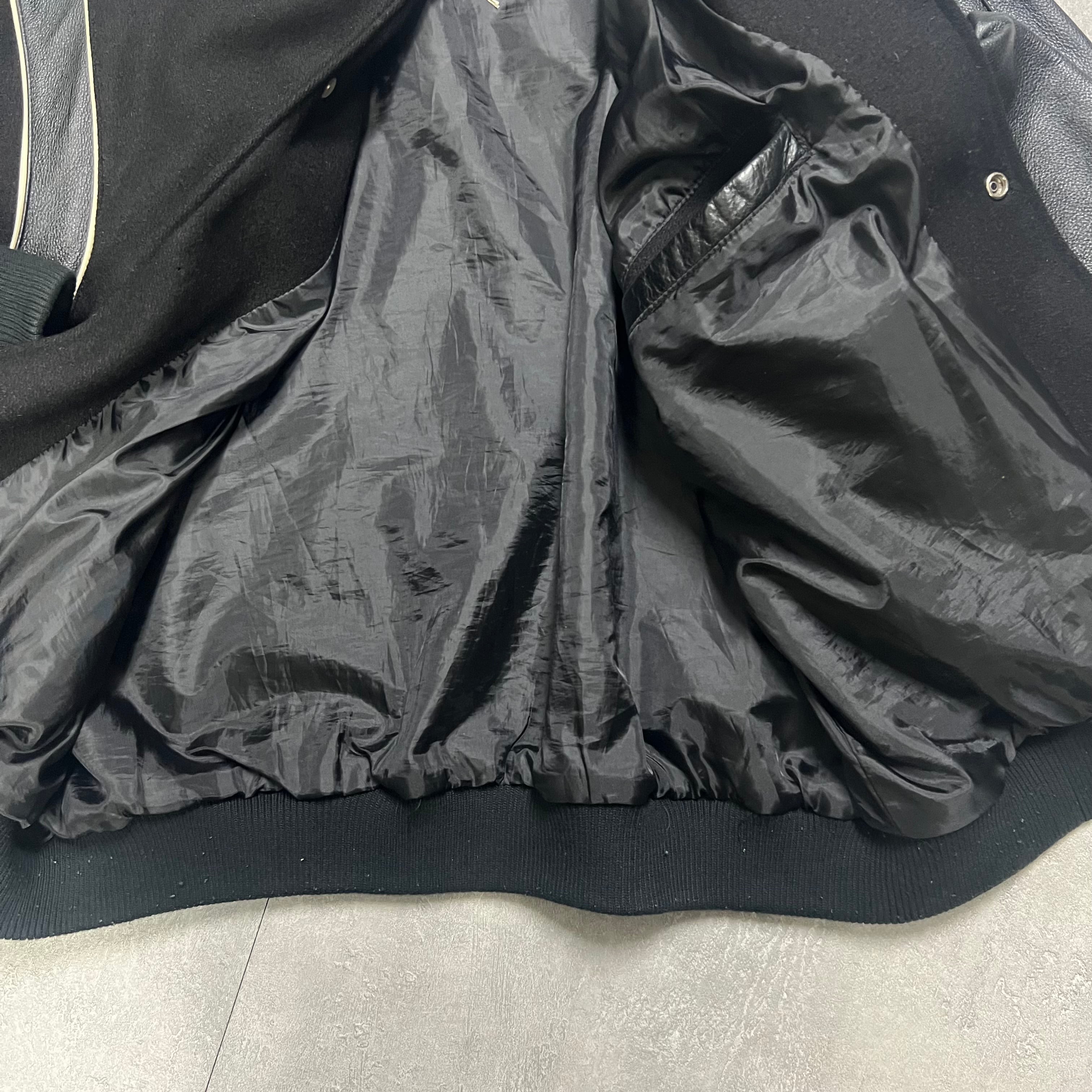 オールブラックで袖レザー